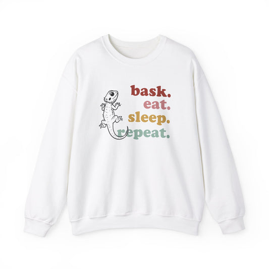 Bask Eat Sleep Repeat Bearded Dragon Unisex Crewneck Sweatshirt | Reptile Sweatshirt | Gift for Reptile Lover | Pet Reptile